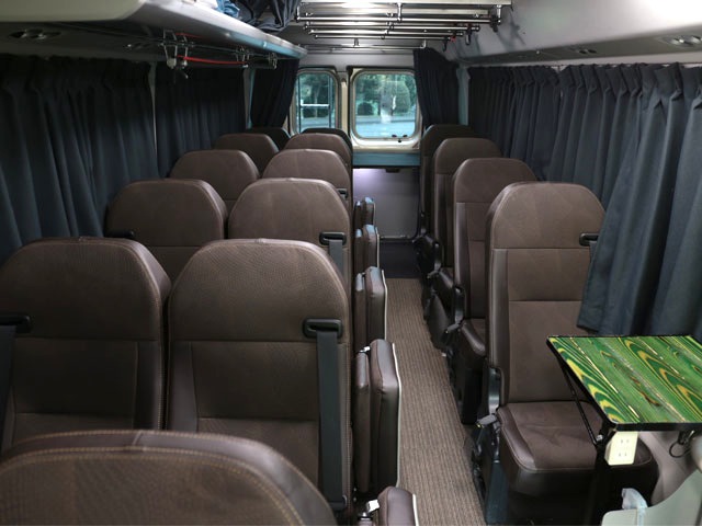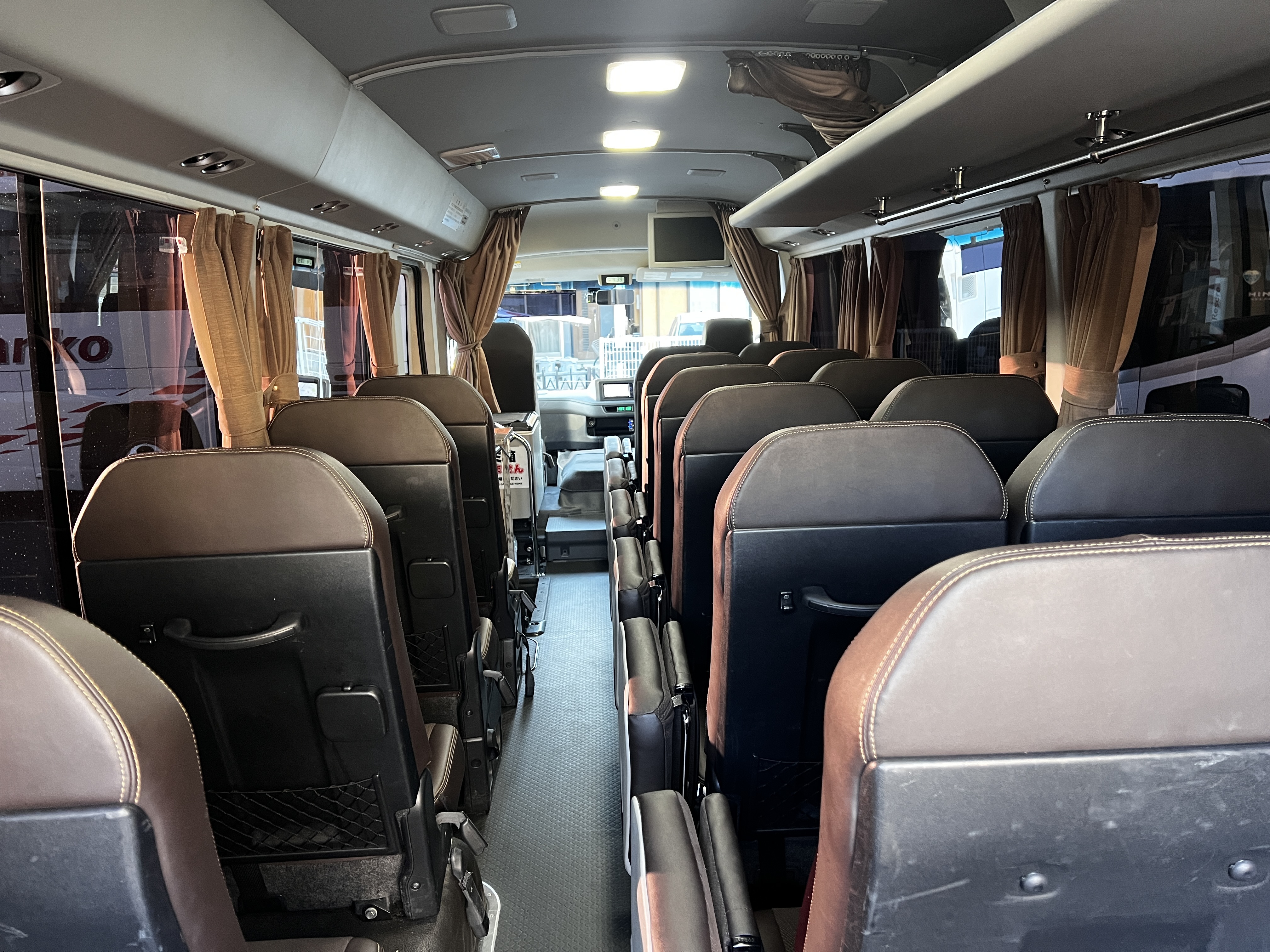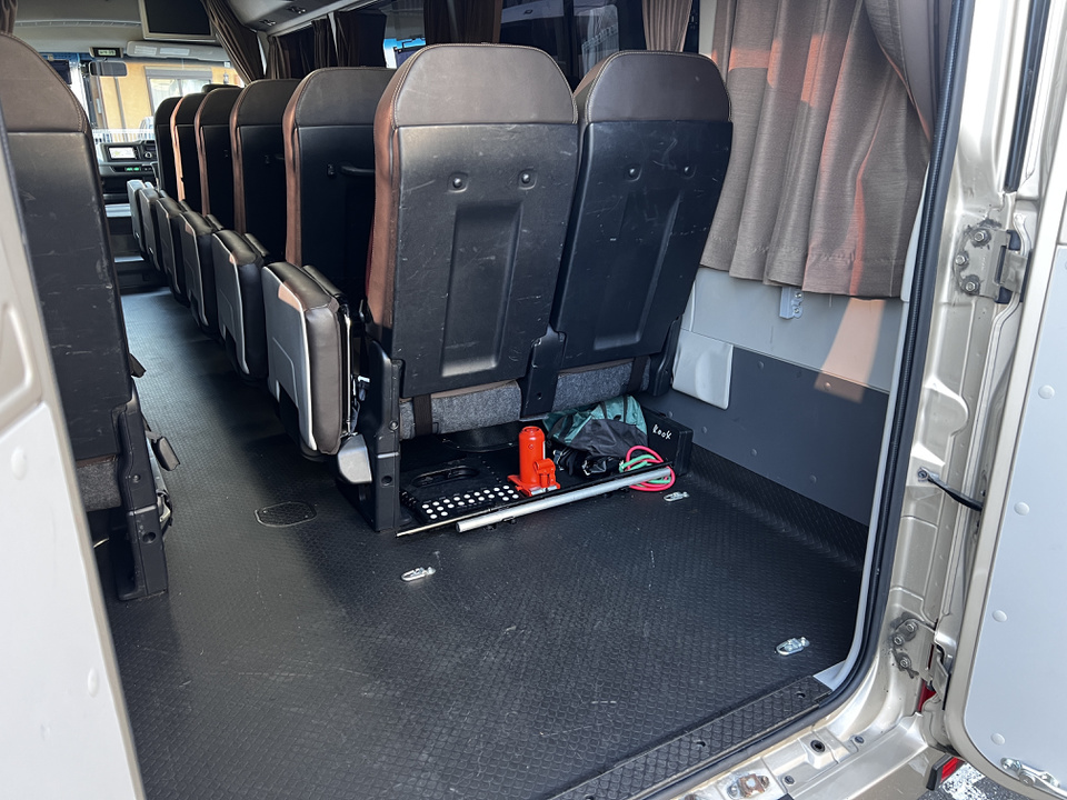 23人乗りマイクロバス ○リクライニングシート○後部にトランクルーム○全長7メートル○有料道路区分:中型車○乗車人数23名(補助席6名含む)☆装備は車両により違いありますのでご予約の前にお問い合わせください。 シックなブラウン基調 リクライニングシート 荷物スペース 乗車人数27名(補助席6名含む) バスの大きさ 長さ:7m 車幅:2m 車高:2.9m
